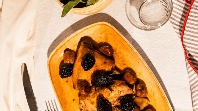 È arrivato quel momento dell’anno: il sole che tramonta sempre prima e il freddo che aumenta ci ricordano che l’autunno è ormai inoltrato e che tra poco cominceremo a vedere le prime luci di Natale – sempre che non le abbiamo già viste. Il mese di novembre è così e in casa Guidi ci piace anche per questo, perché dopo un’estate frenetica si torna ad approfittare del tepore del nido familiare. Cambiano i luoghi ma non cambia la buona compagnia con cui condividere le serate, né la voglia di farlo con tutto il gusto delle ricette di stagione. Oggi ve ne proponiamo una che per noi rappresenta l’apoteosi del mese di novembre: la faraona con prugne e castagne.